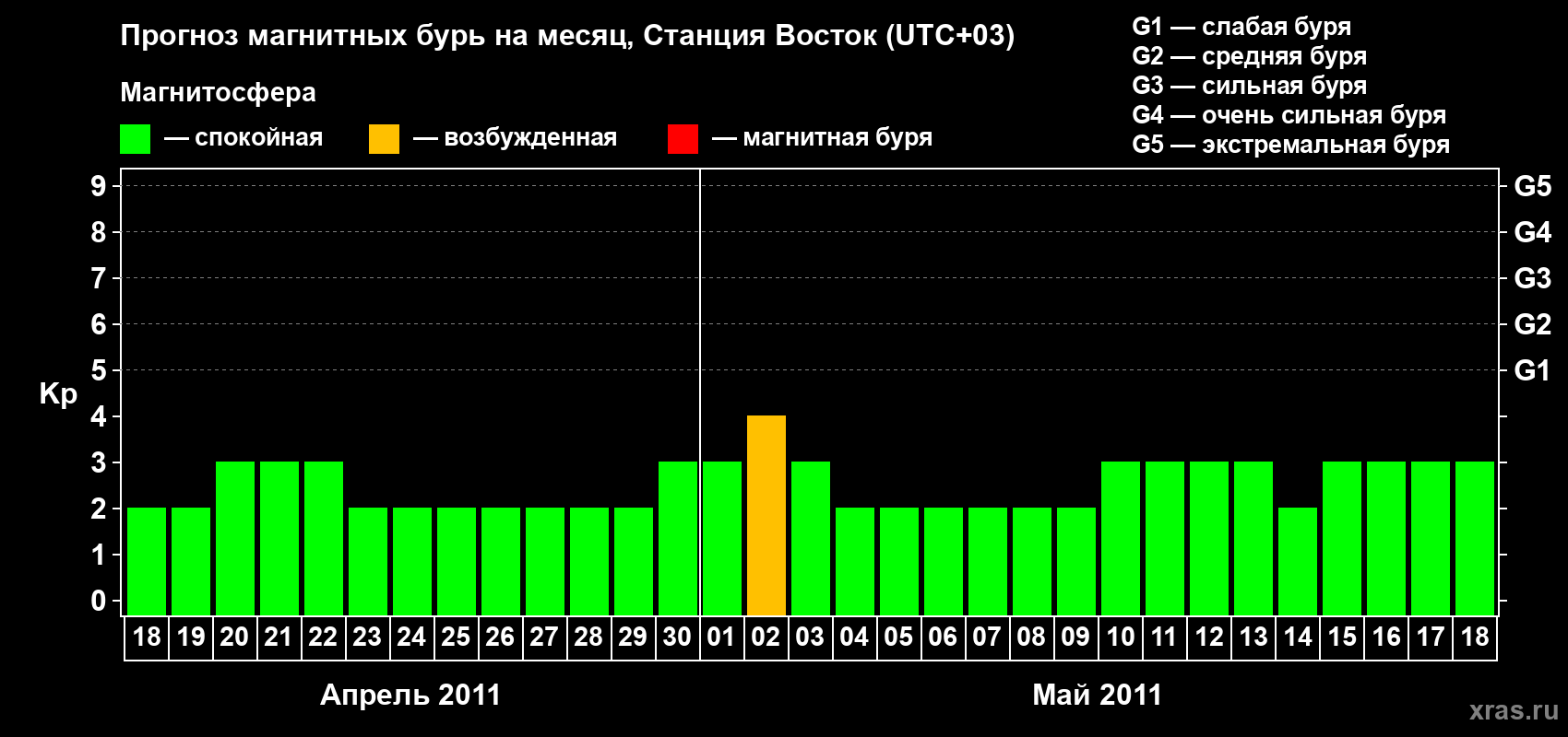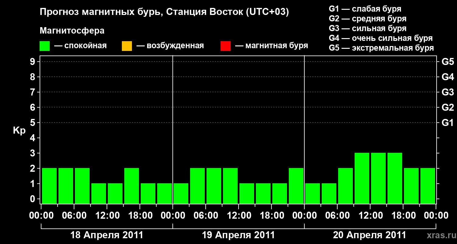 Прогноз магнитных бурь локации Станция Восток — 18 апреля 2011 года