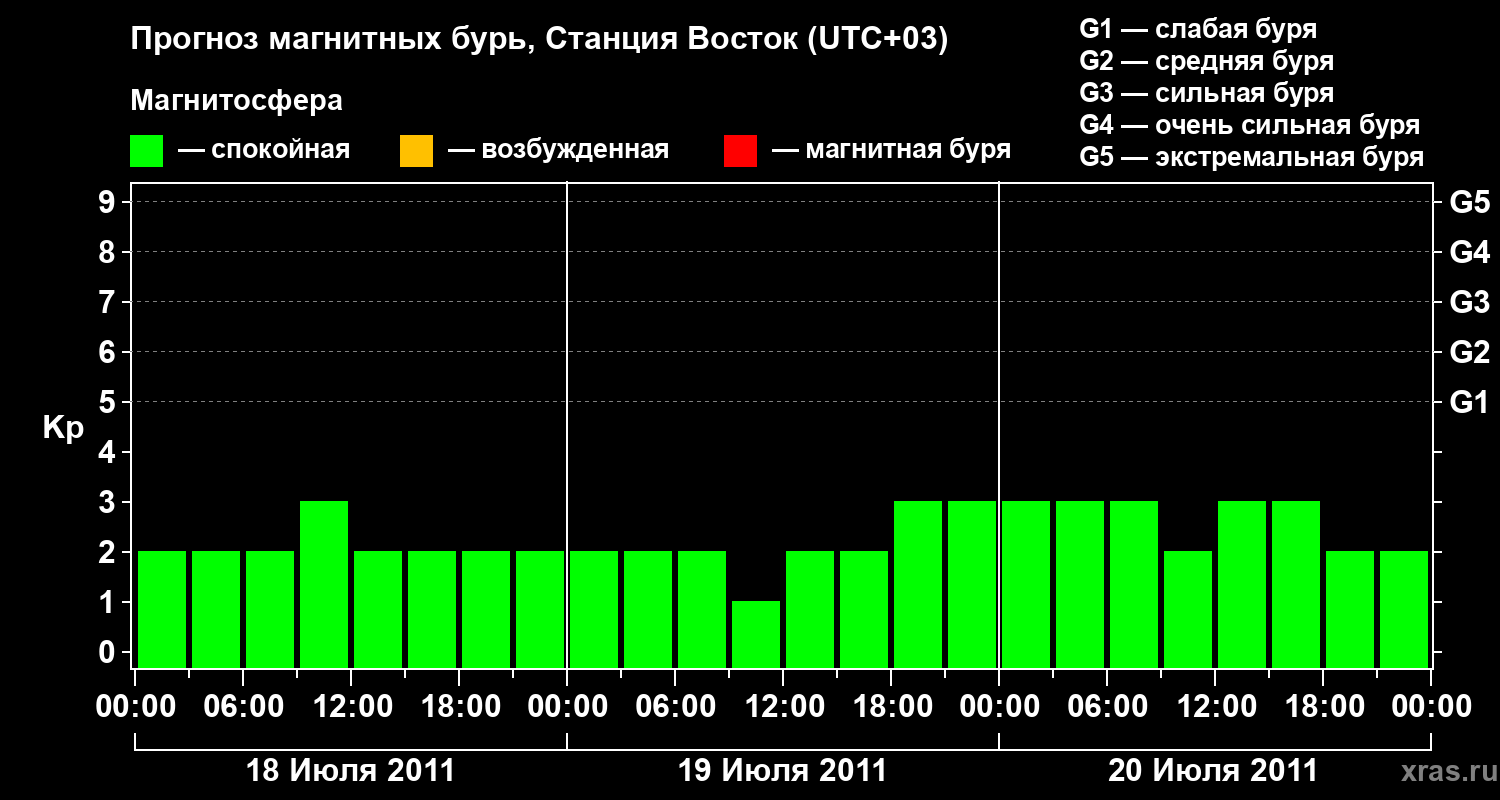 Прогноз магнитных бурь локации Станция Восток — 18 июля 2011 года