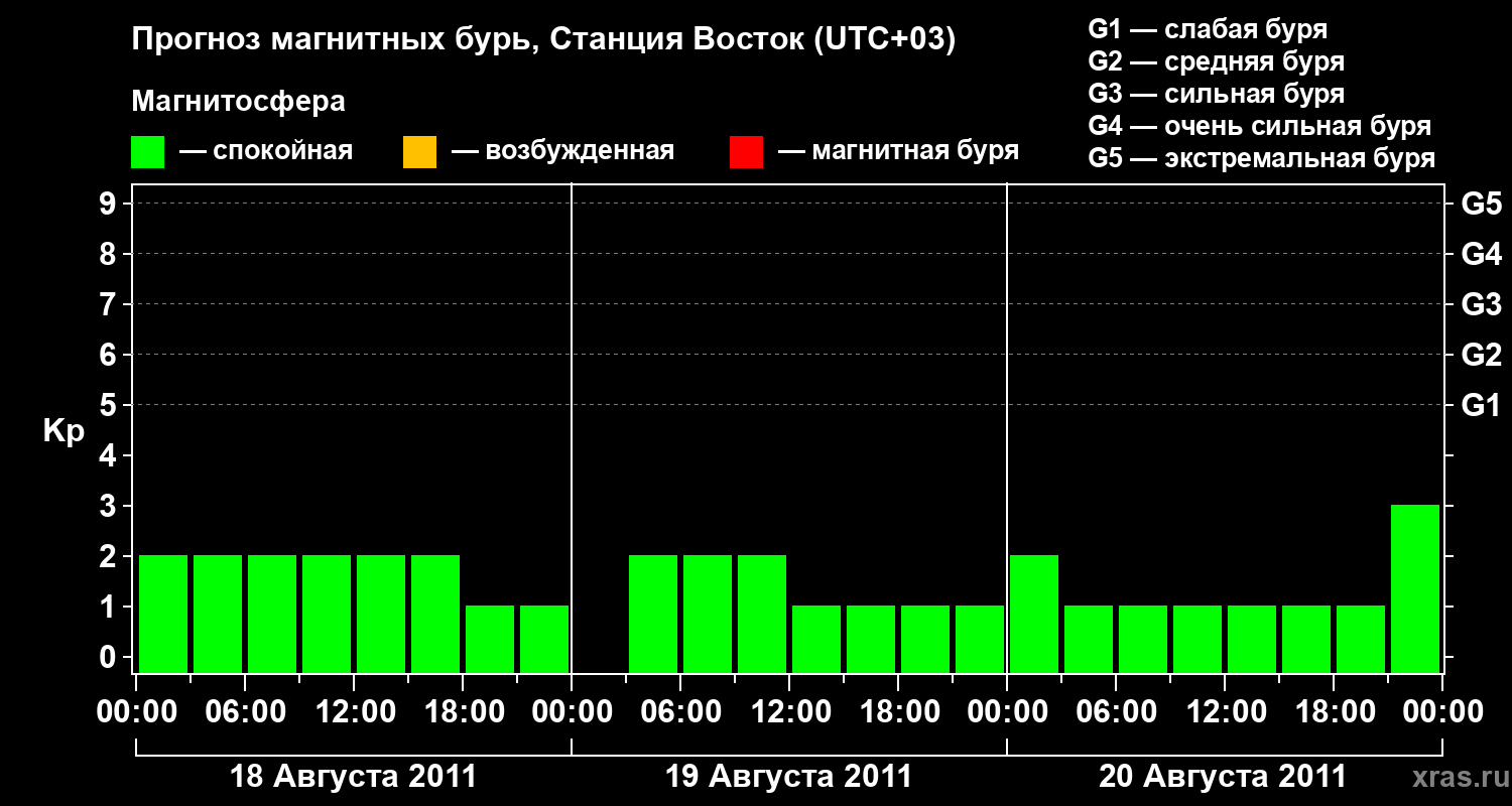 Прогноз магнитных бурь локации Станция Восток — 18 августа 2011 года