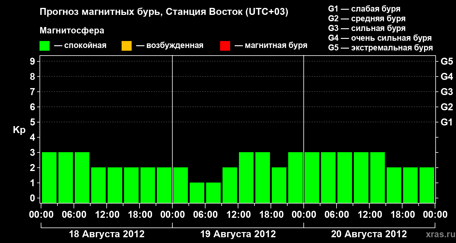 Прогноз магнитных бурь локации Станция Восток — 18 августа 2012 года
