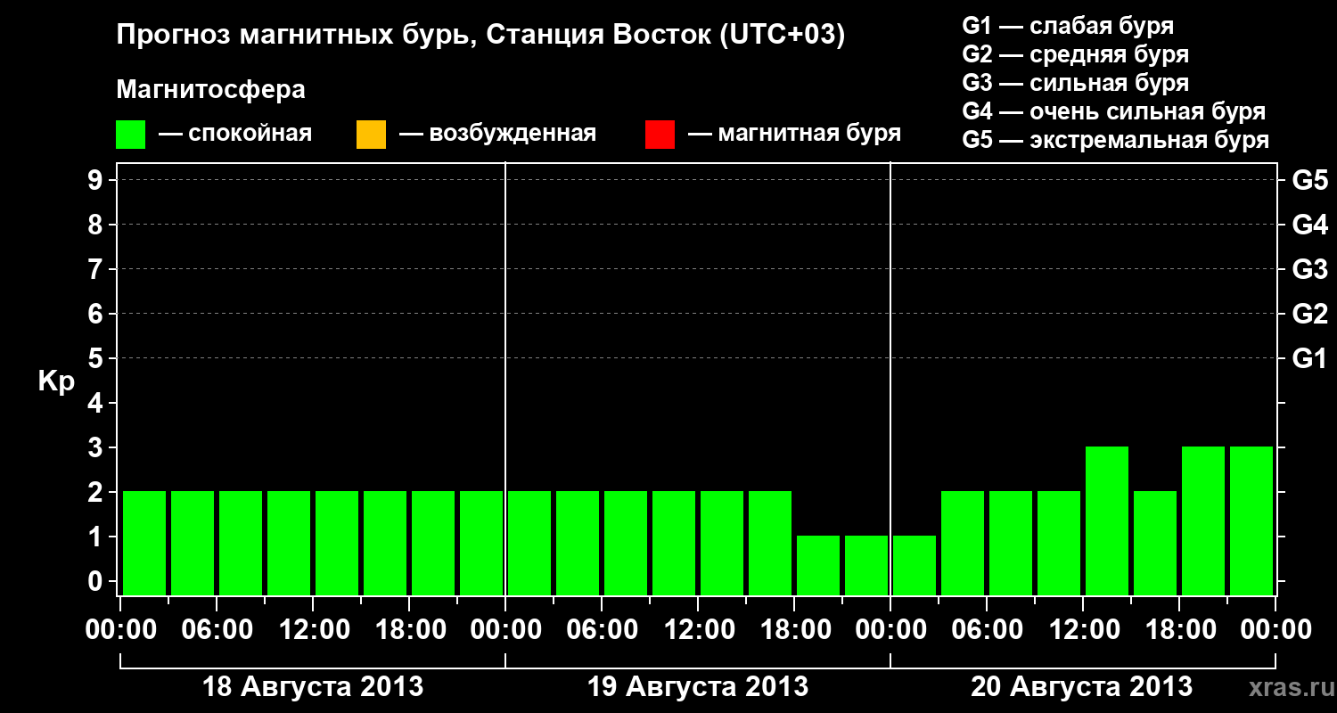 Прогноз магнитных бурь локации Станция Восток — 18 августа 2013 года
