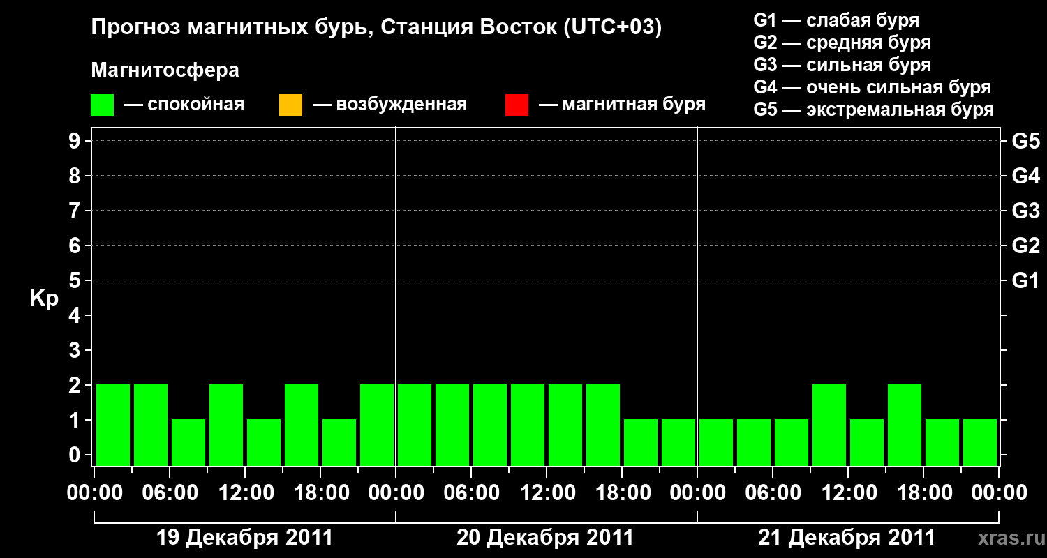 Прогноз магнитных бурь локации Станция Восток — 19 декабря 2011 года