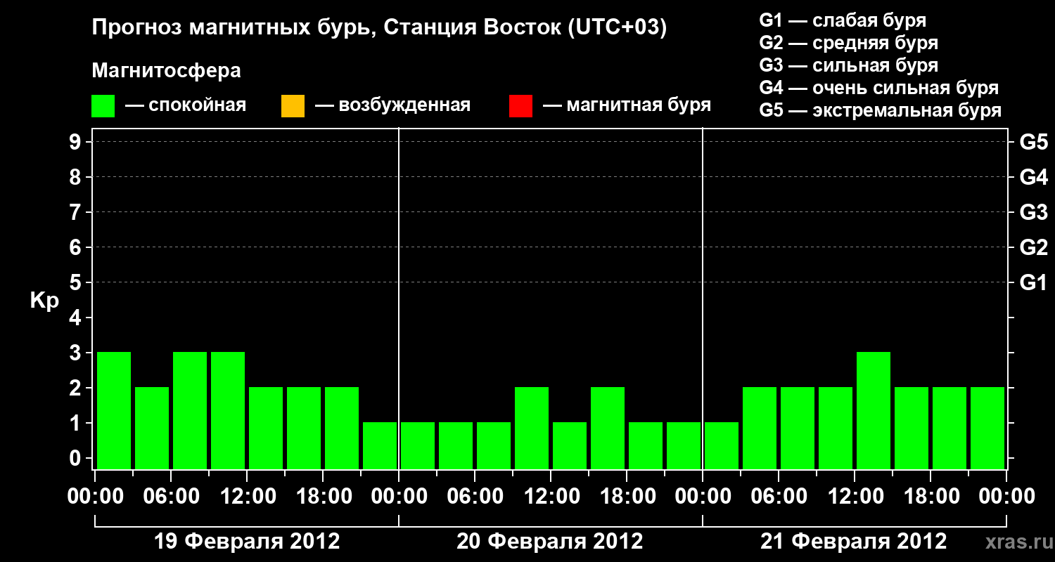 Прогноз магнитных бурь локации Станция Восток — 19 февраля 2012 года