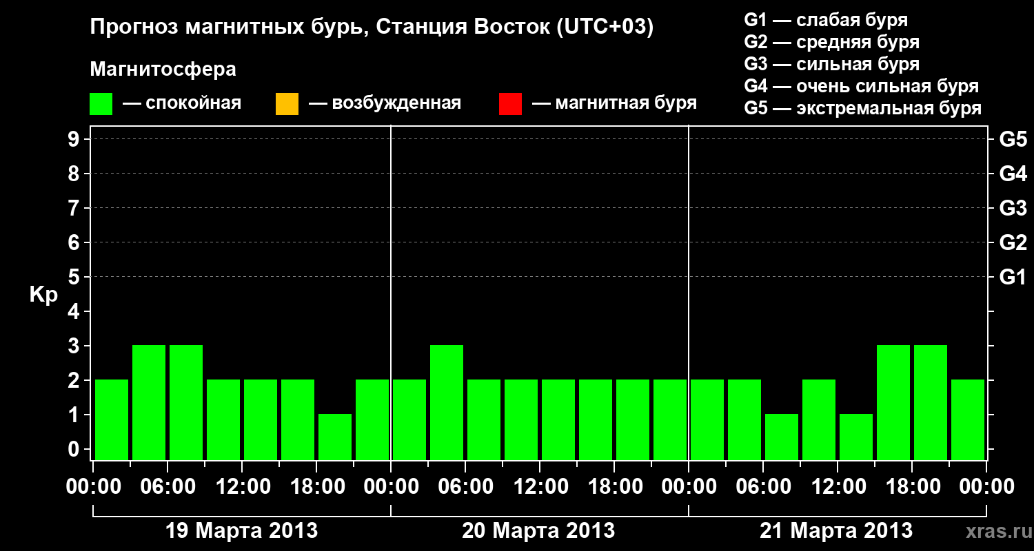 Прогноз магнитных бурь локации Станция Восток — 19 марта 2013 года