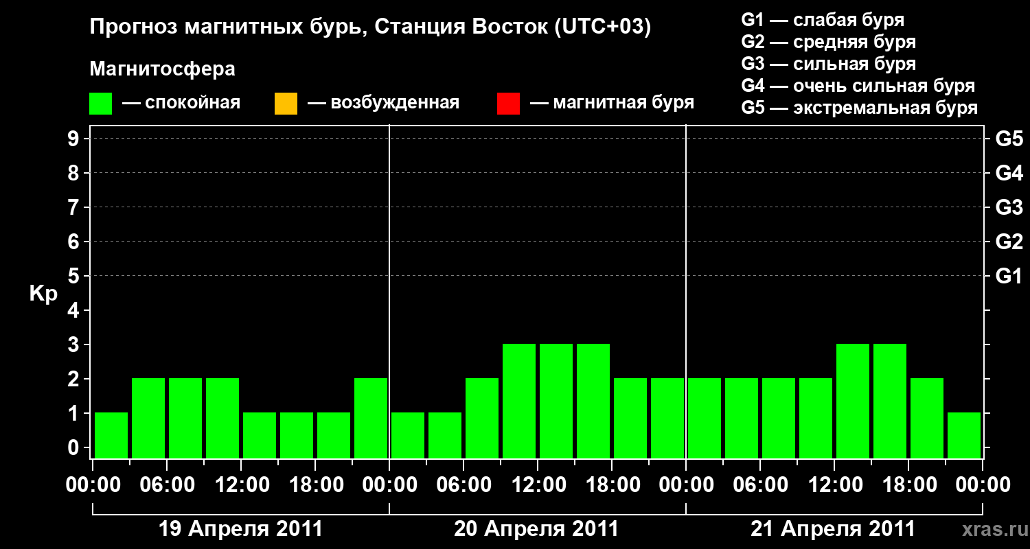 Прогноз магнитных бурь локации Станция Восток — 19 апреля 2011 года