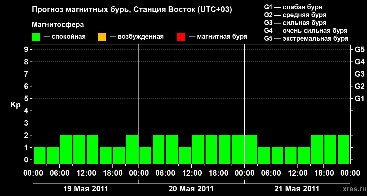 Прогноз магнитных бурь локации Станция Восток — 19 мая 2011 года