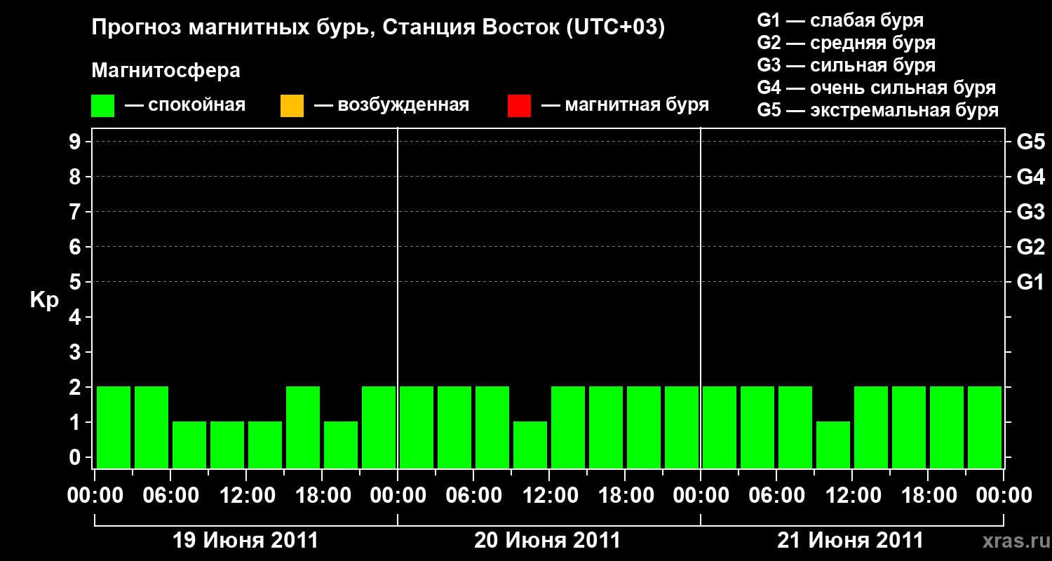 Прогноз магнитных бурь локации Станция Восток — 19 июня 2011 года