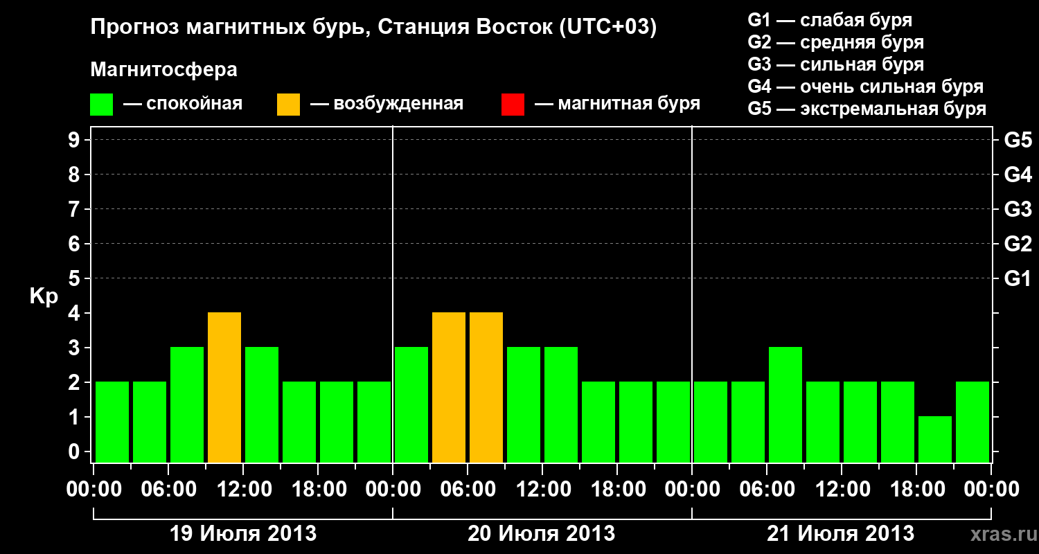 Прогноз магнитных бурь локации Станция Восток — 19 июля 2013 года