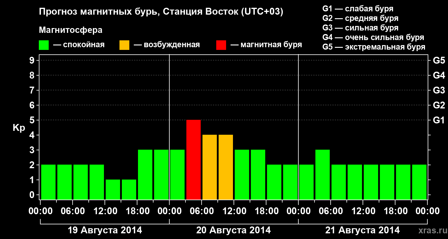 Прогноз магнитных бурь локации Станция Восток — 19 августа 2014 года