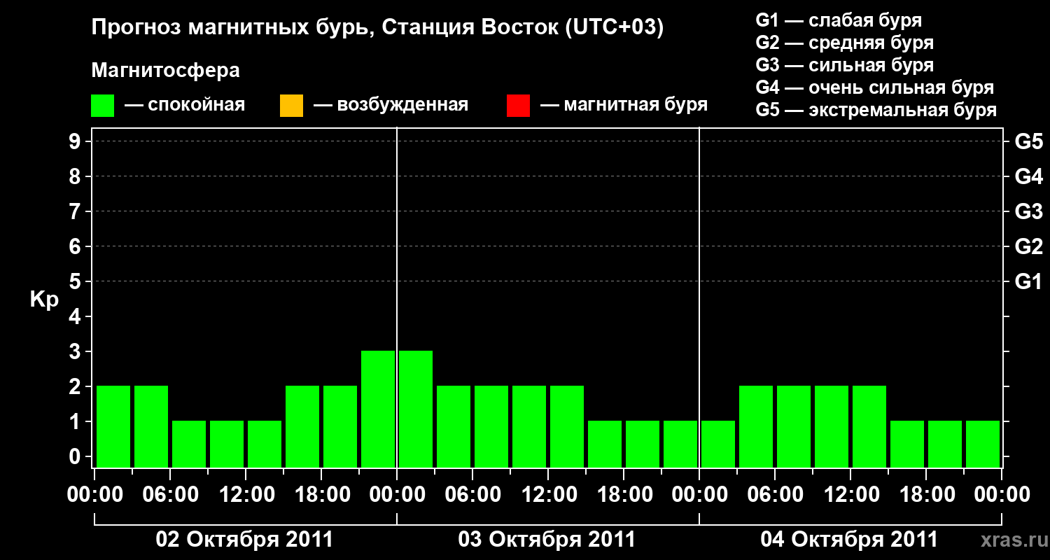 Прогноз магнитных бурь локации Станция Восток — 2 октября 2011 года