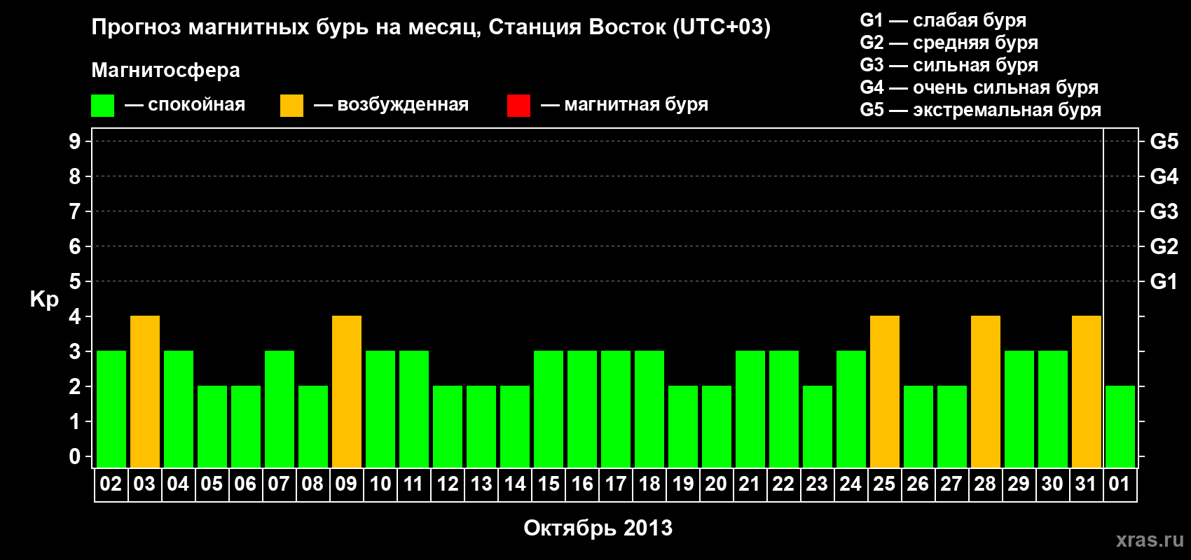 Прогноз магнитных бурь локации Станция Восток — 2 октября 2013 года