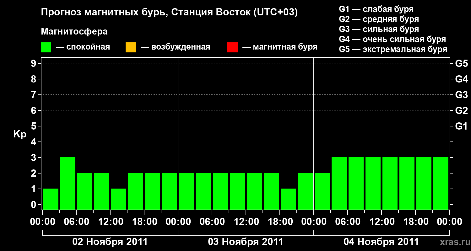 Прогноз магнитных бурь локации Станция Восток — 2 ноября 2011 года