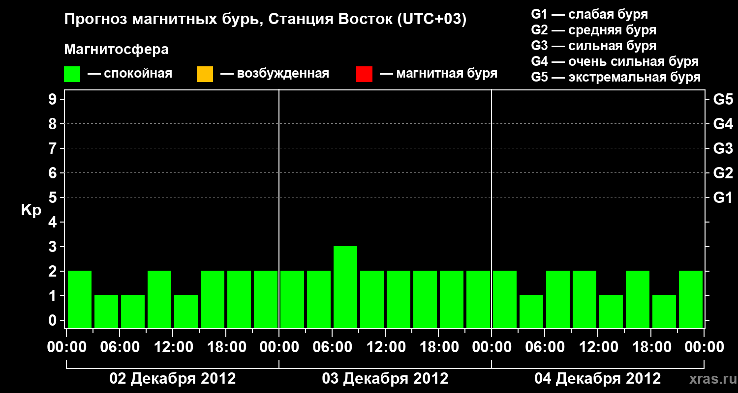 Прогноз магнитных бурь локации Станция Восток — 2 декабря 2012 года