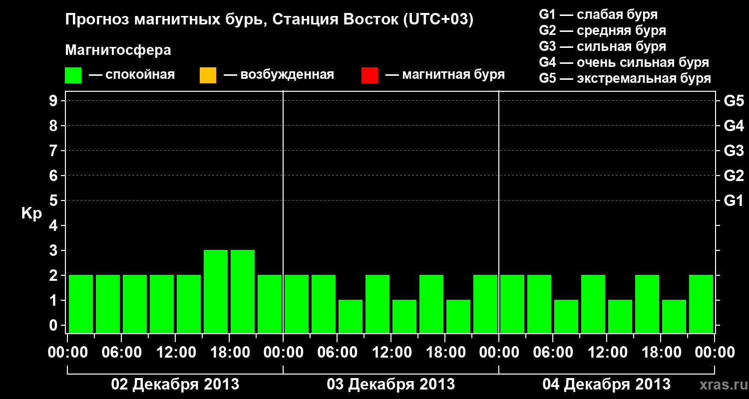 Прогноз магнитных бурь локации Станция Восток — 2 декабря 2013 года