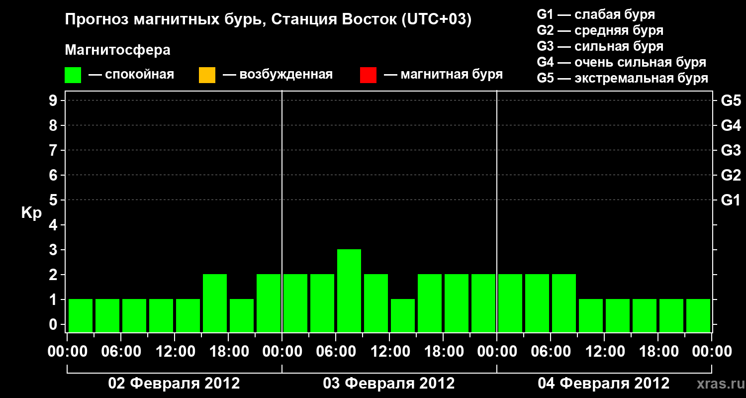 Прогноз магнитных бурь локации Станция Восток — 2 февраля 2012 года