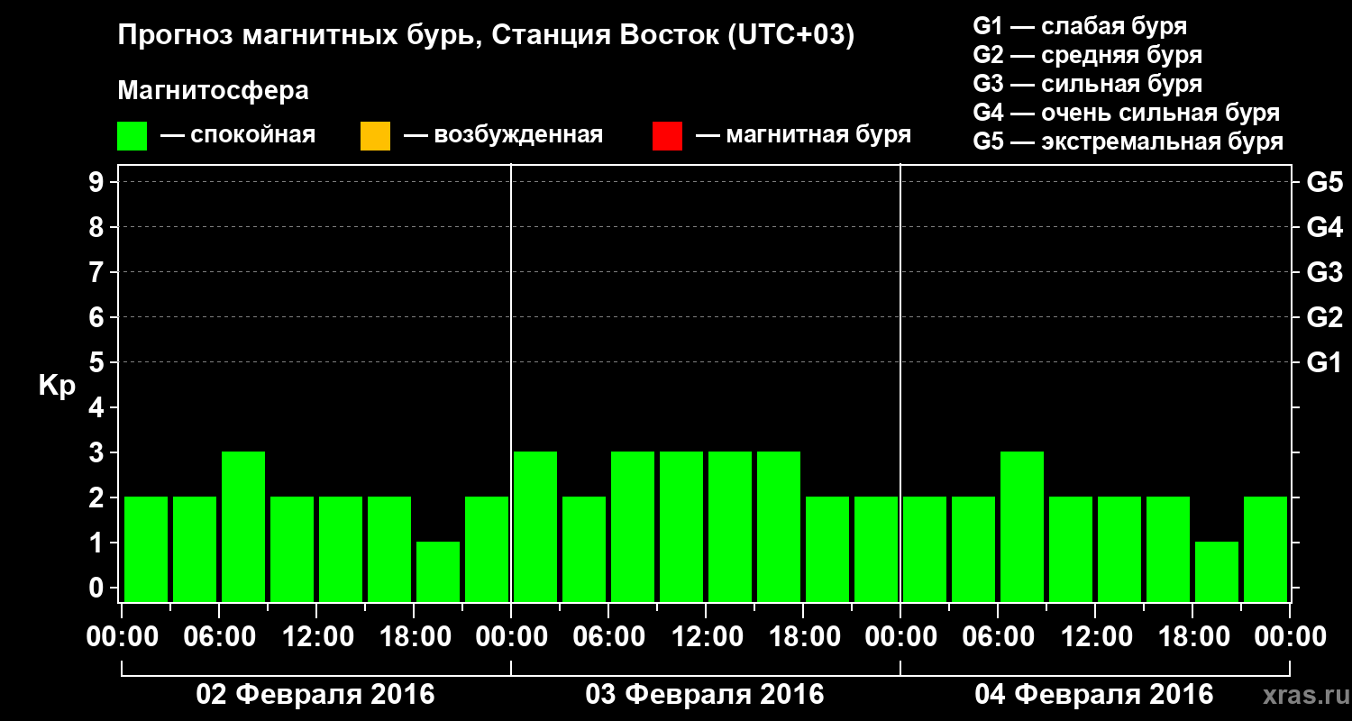 Прогноз магнитных бурь локации Станция Восток — 2 февраля 2016 года