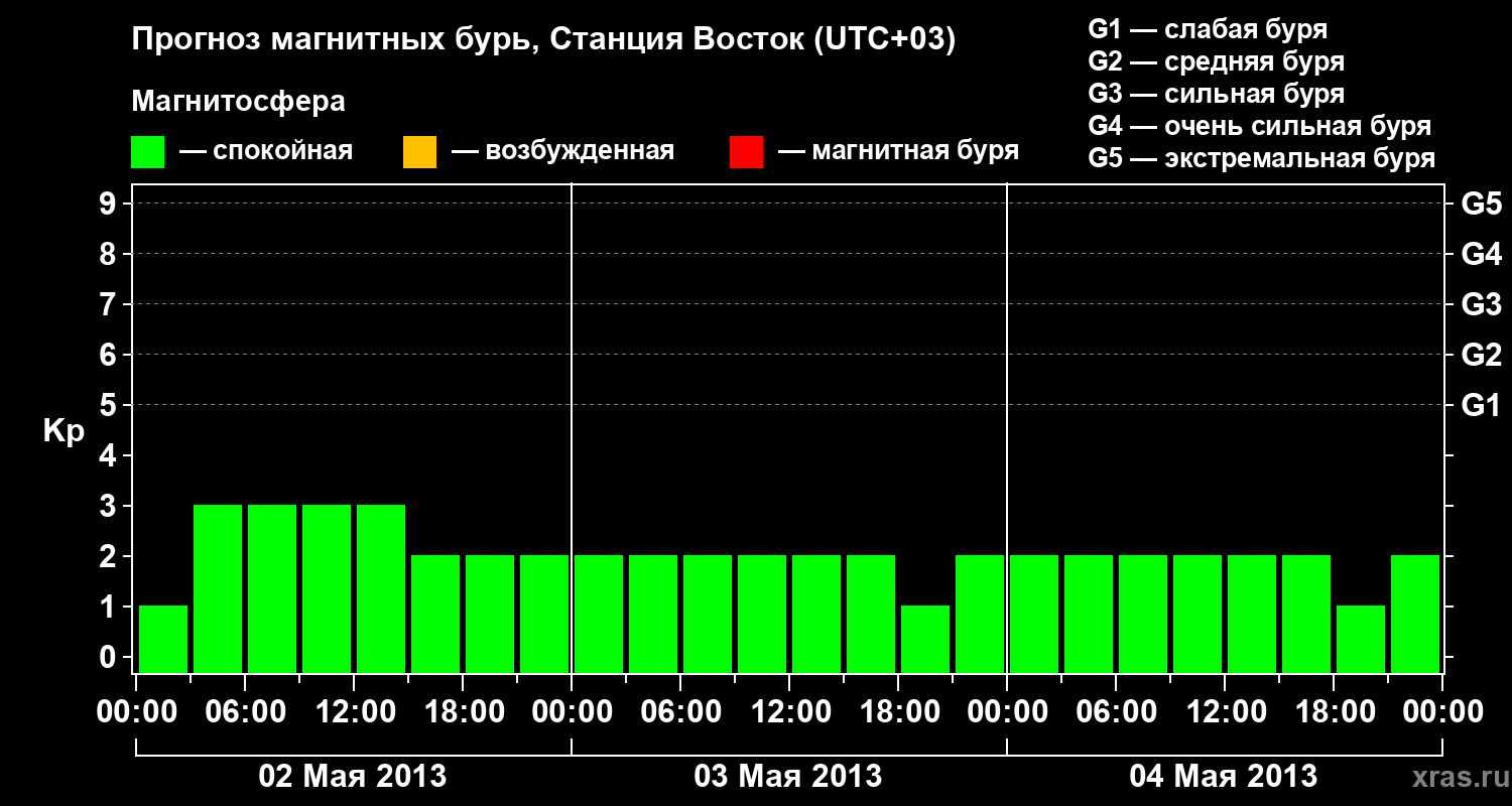 Прогноз магнитных бурь локации Станция Восток — 2 мая 2013 года