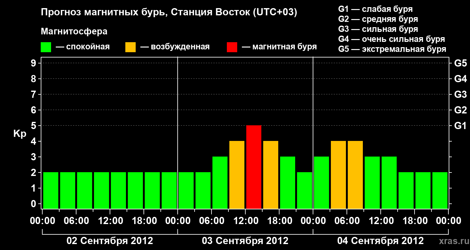 Прогноз магнитных бурь локации Станция Восток — 2 сентября 2012 года