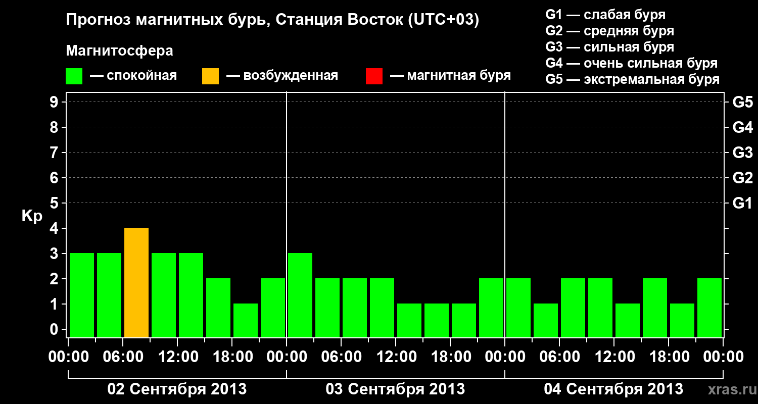 Прогноз магнитных бурь локации Станция Восток — 2 сентября 2013 года