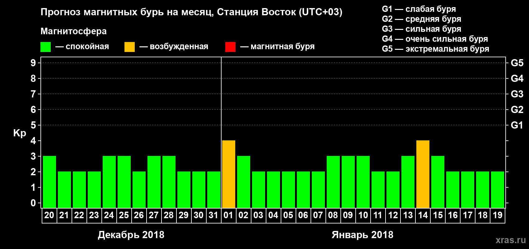 Прогноз магнитных бурь локации Станция Восток — 20 декабря 2017 года