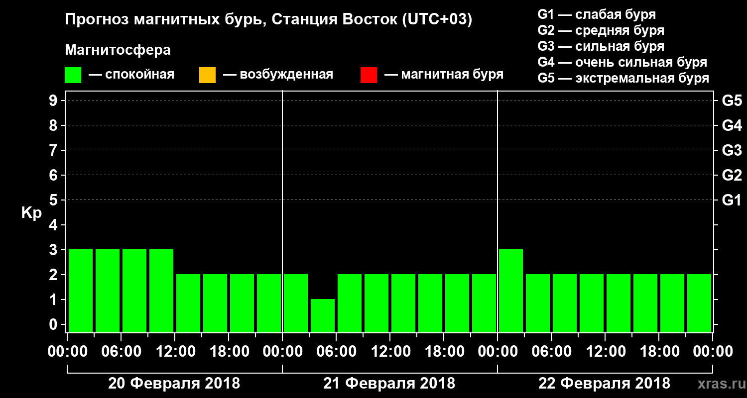 Прогноз магнитных бурь локации Станция Восток — 20 февраля 2018 года