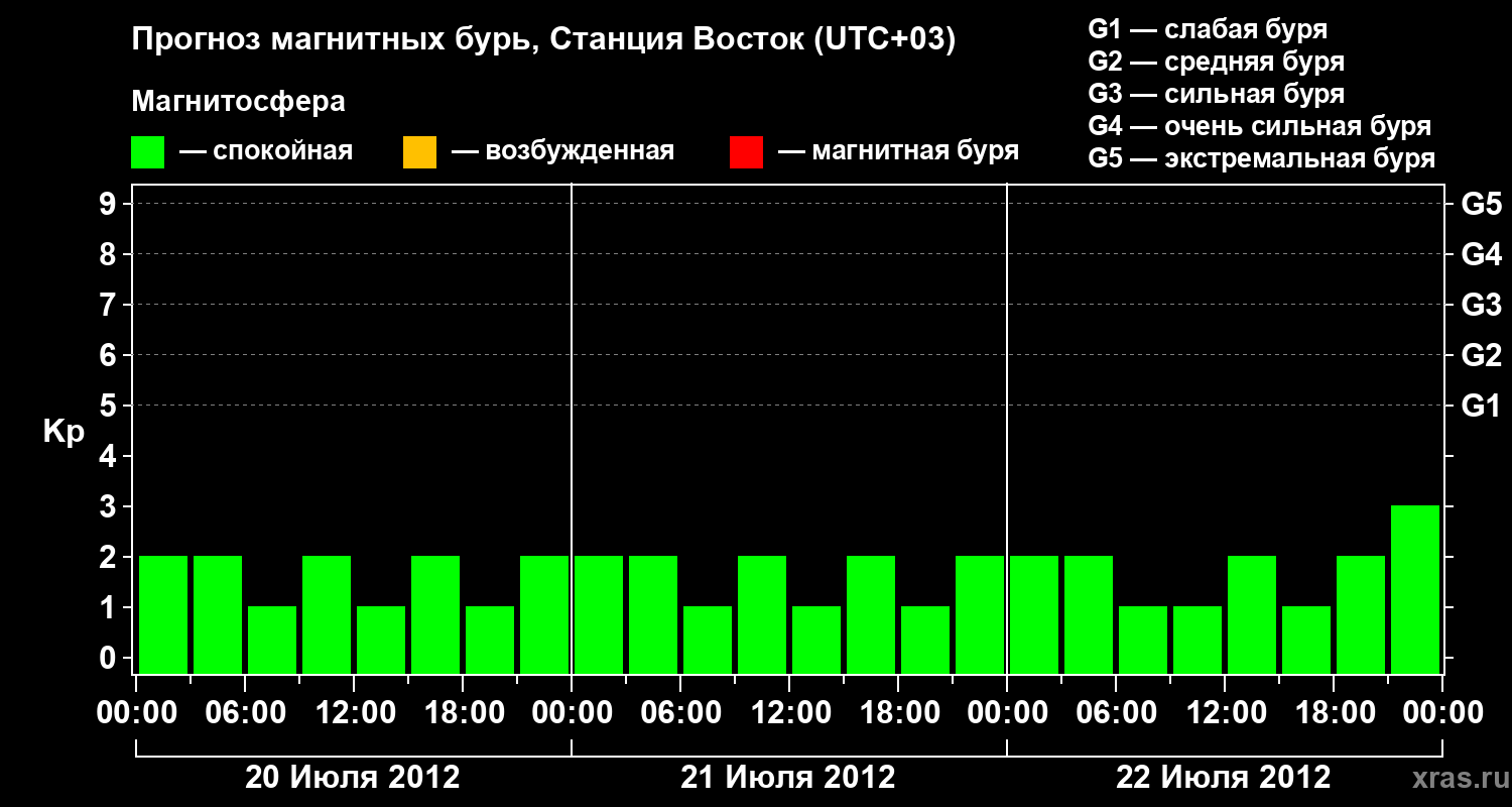 Прогноз магнитных бурь локации Станция Восток — 20 июля 2012 года
