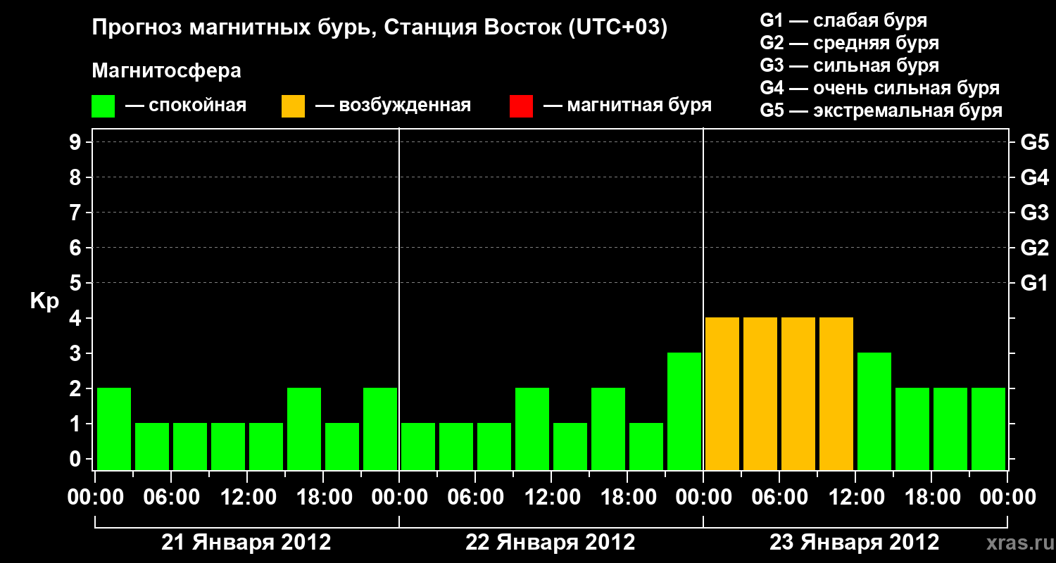 Прогноз магнитных бурь локации Станция Восток — 21 января 2012 года