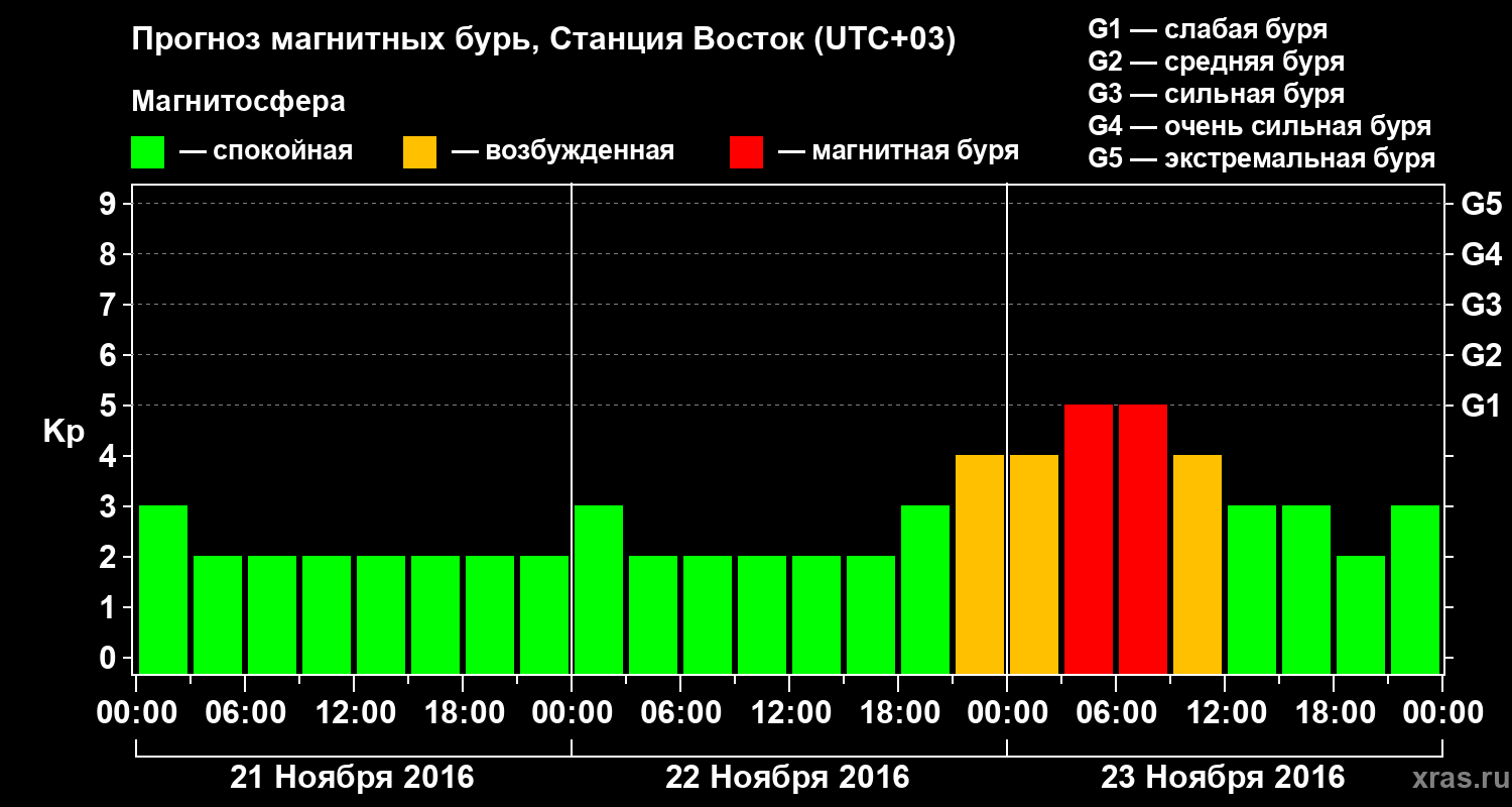 Прогноз магнитных бурь локации Станция Восток — 21 ноября 2016 года