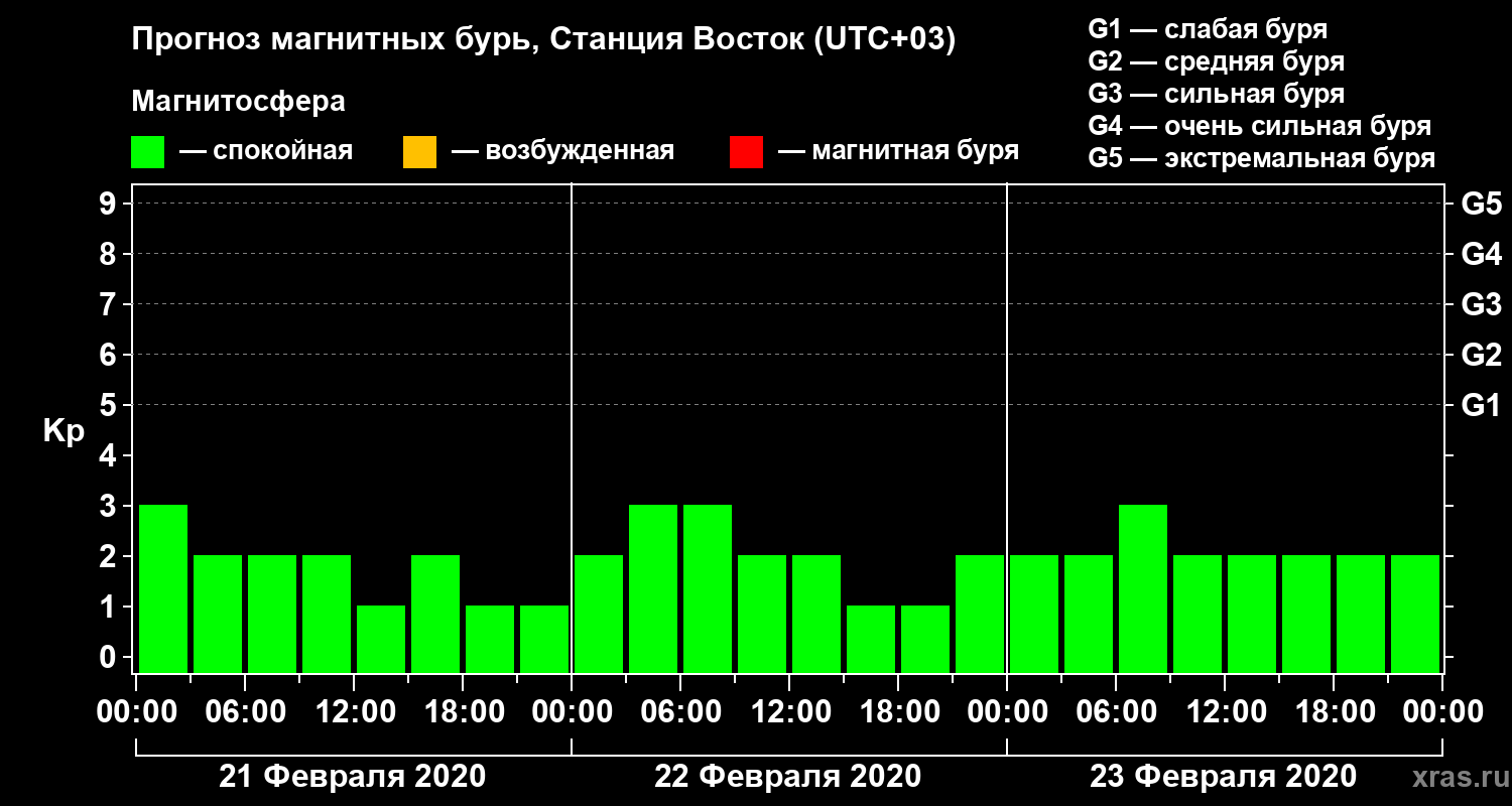 Прогноз магнитных бурь локации Станция Восток — 21 февраля 2020 года