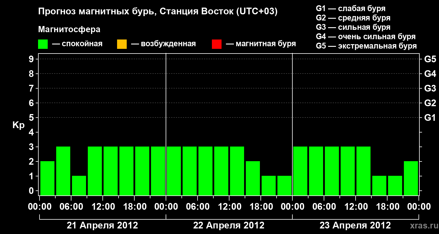 Прогноз магнитных бурь локации Станция Восток — 21 апреля 2012 года