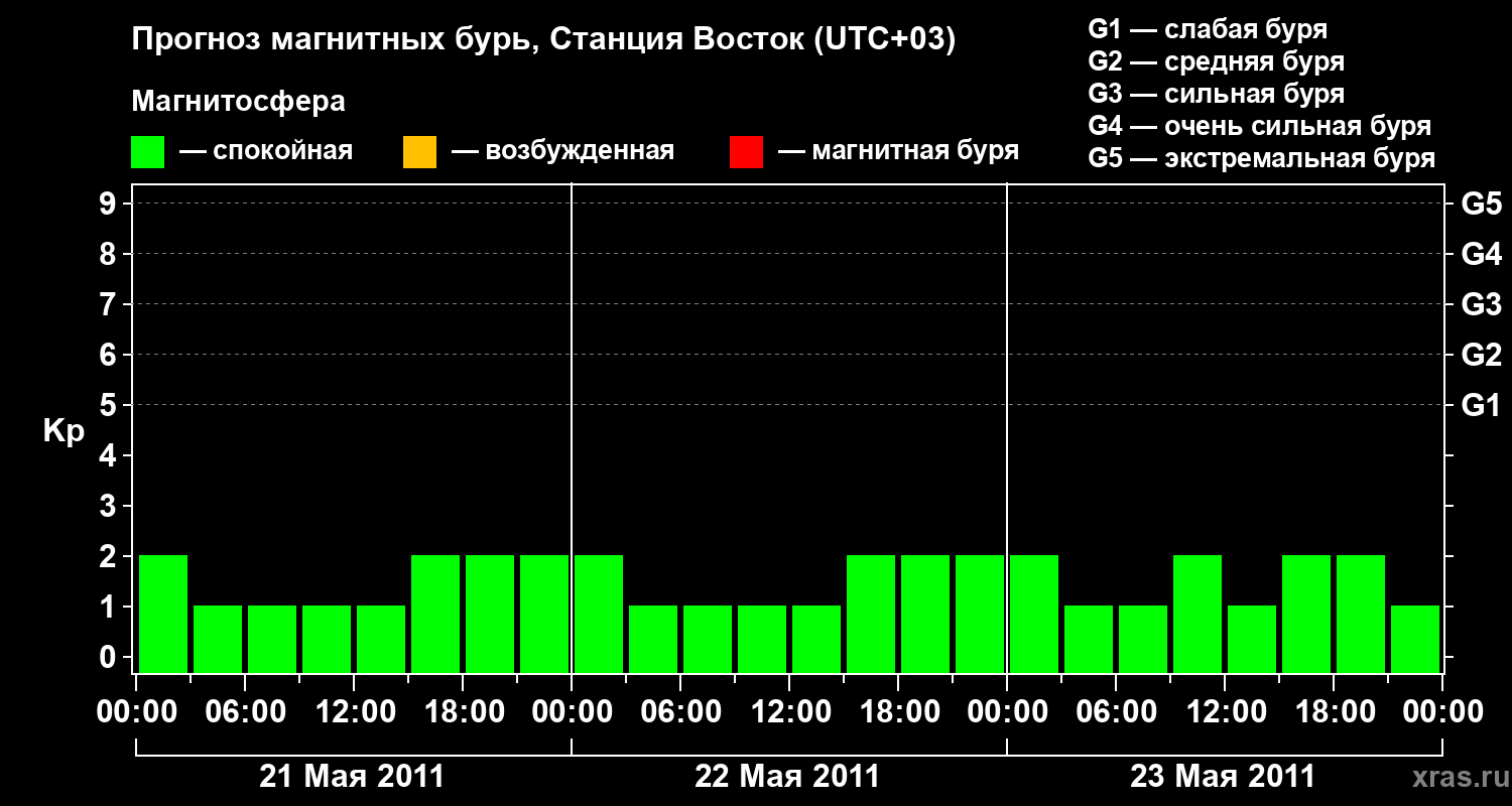 Прогноз магнитных бурь локации Станция Восток — 21 мая 2011 года