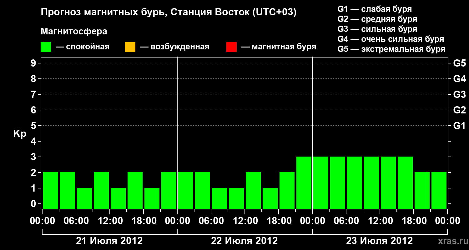 Прогноз магнитных бурь локации Станция Восток — 21 июля 2012 года