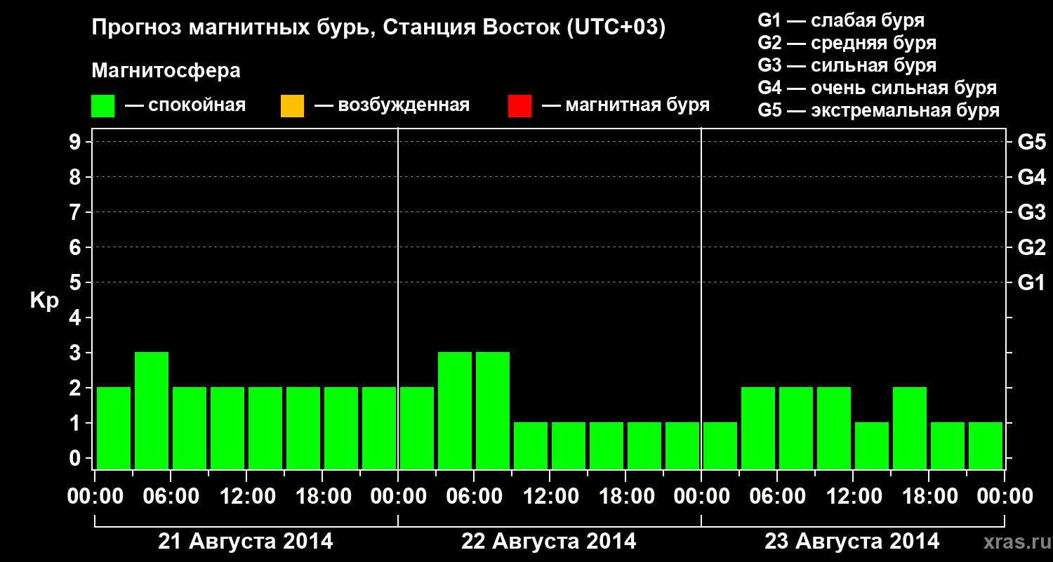 Прогноз магнитных бурь локации Станция Восток — 21 августа 2014 года
