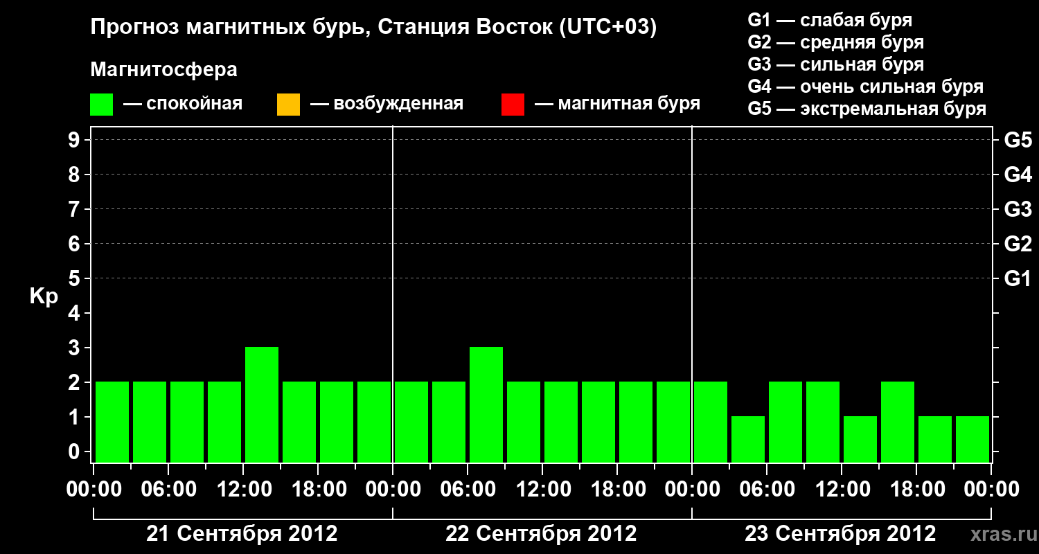 Прогноз магнитных бурь локации Станция Восток — 21 сентября 2012 года