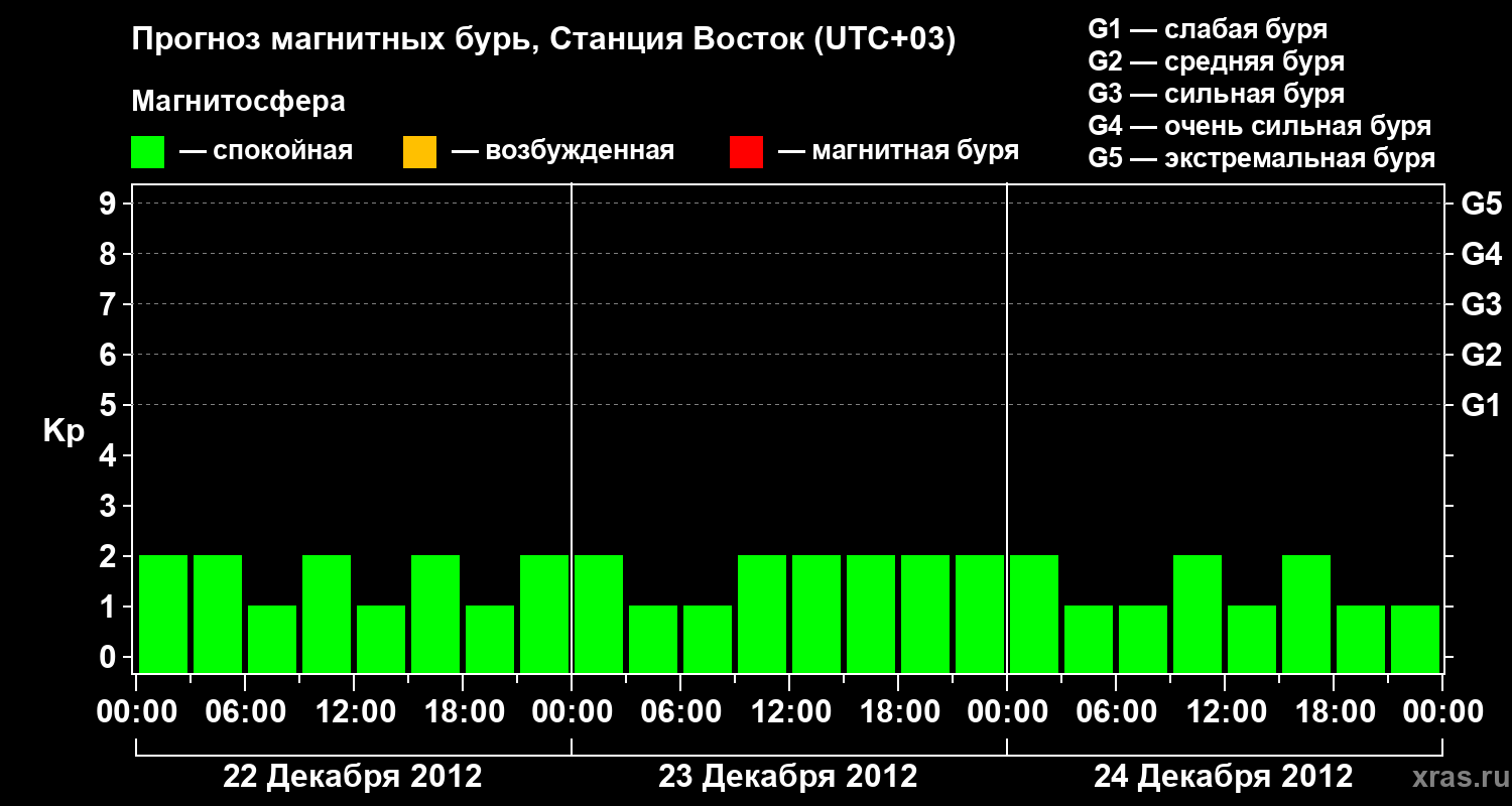 Прогноз магнитных бурь локации Станция Восток — 22 декабря 2012 года