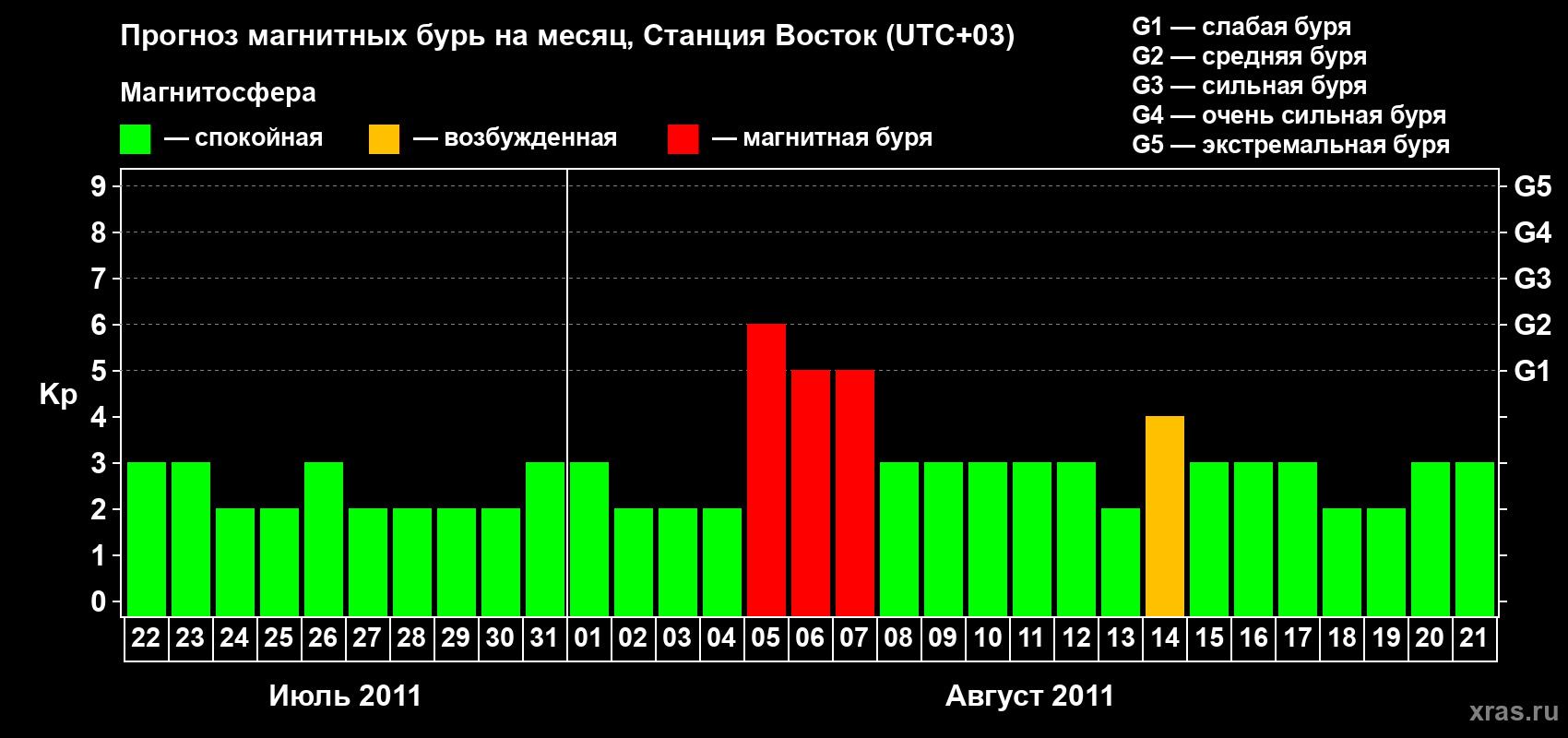 Прогноз магнитных бурь локации Станция Восток — 22 июля 2011 года