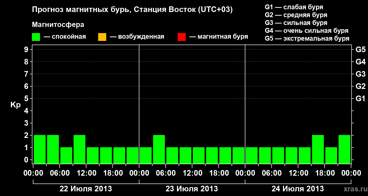 Прогноз магнитных бурь локации Станция Восток — 22 июля 2013 года