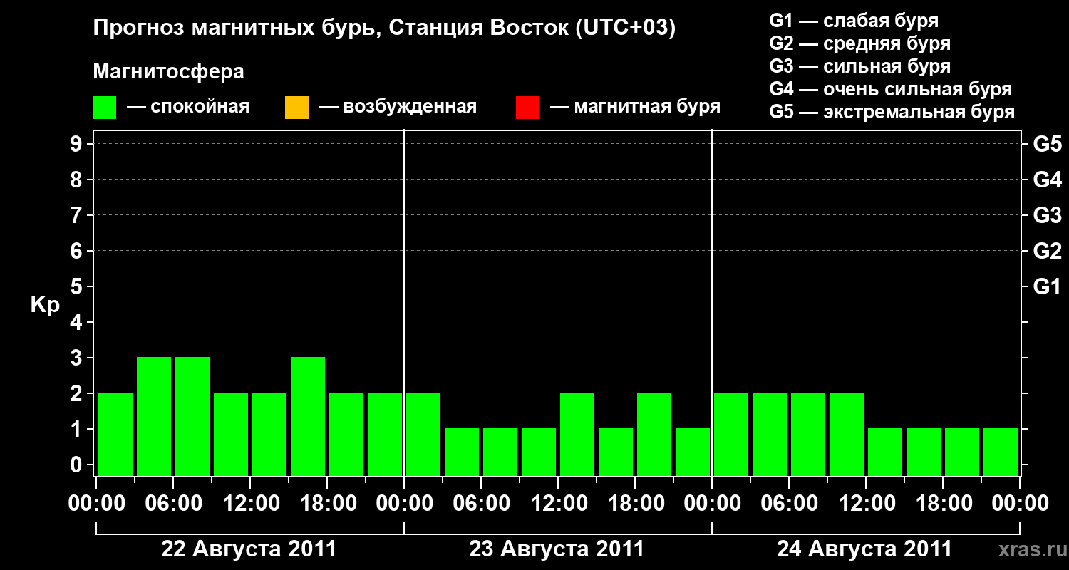 Прогноз магнитных бурь локации Станция Восток — 22 августа 2011 года