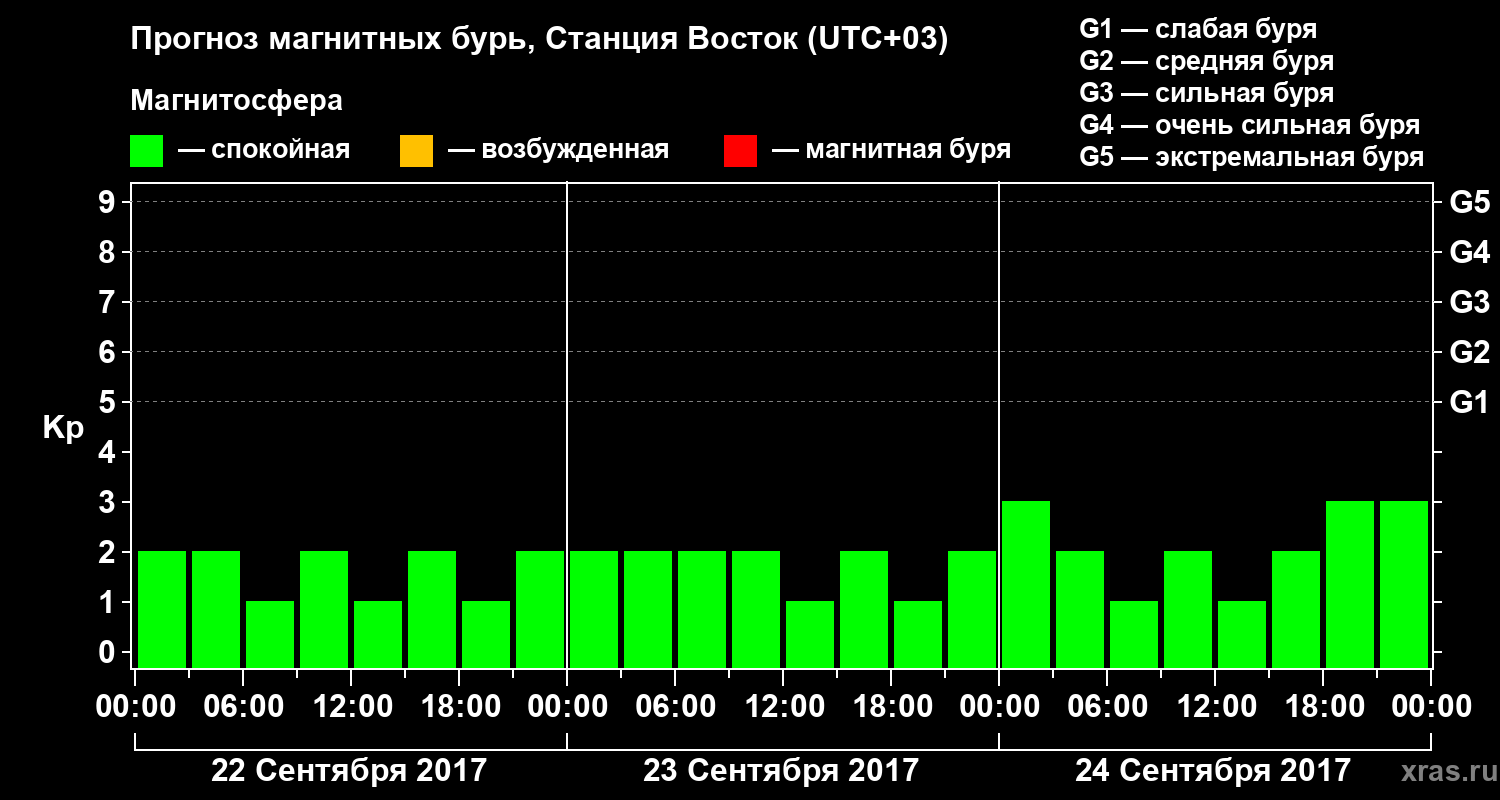 Прогноз магнитных бурь локации Станция Восток — 22 сентября 2017 года