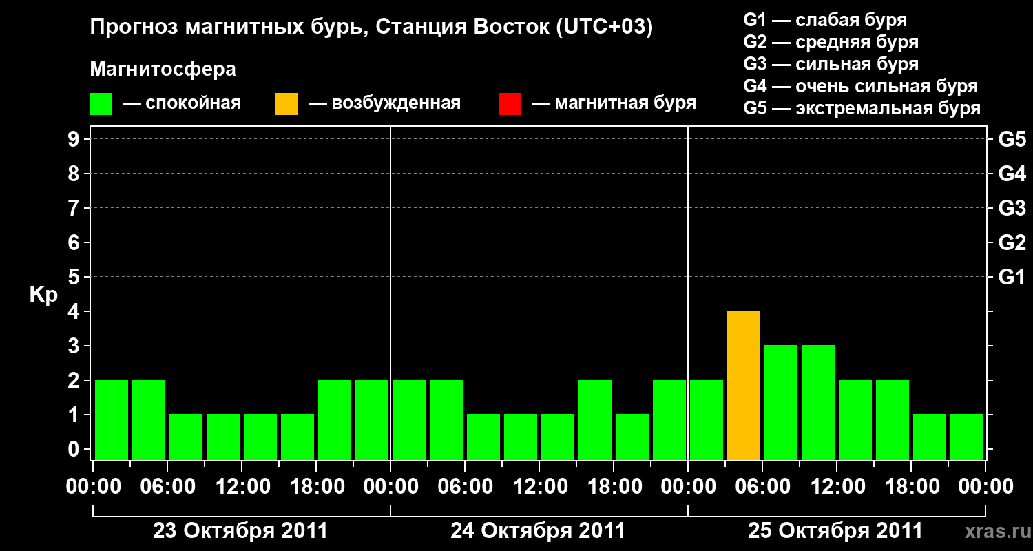 Прогноз магнитных бурь локации Станция Восток — 23 октября 2011 года