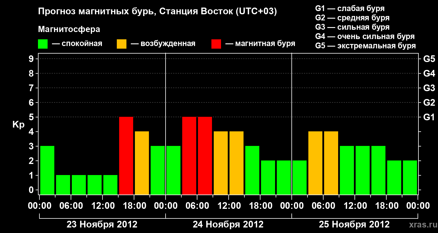 Прогноз магнитных бурь локации Станция Восток — 23 ноября 2012 года