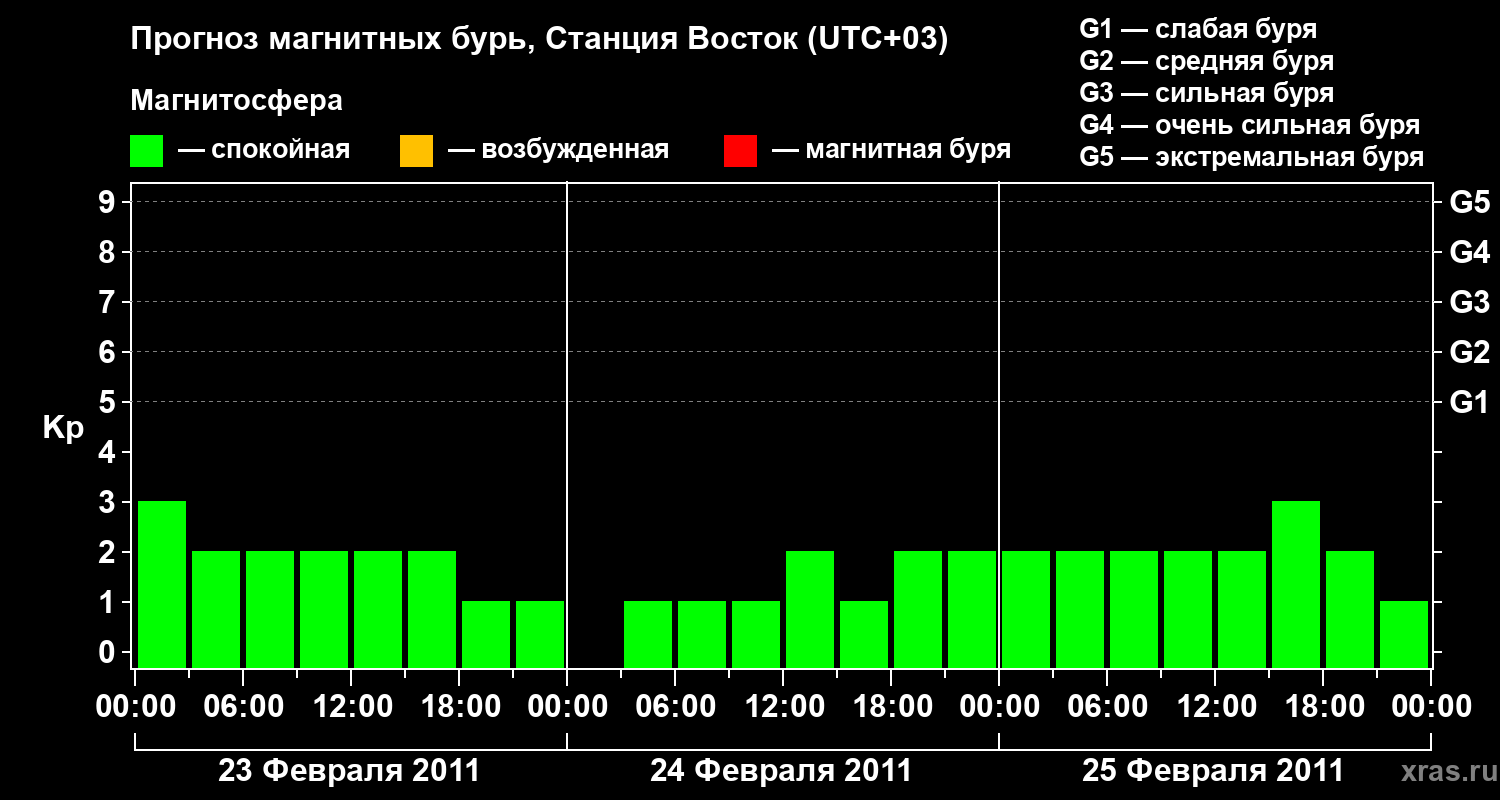 Прогноз магнитных бурь локации Станция Восток — 23 февраля 2011 года