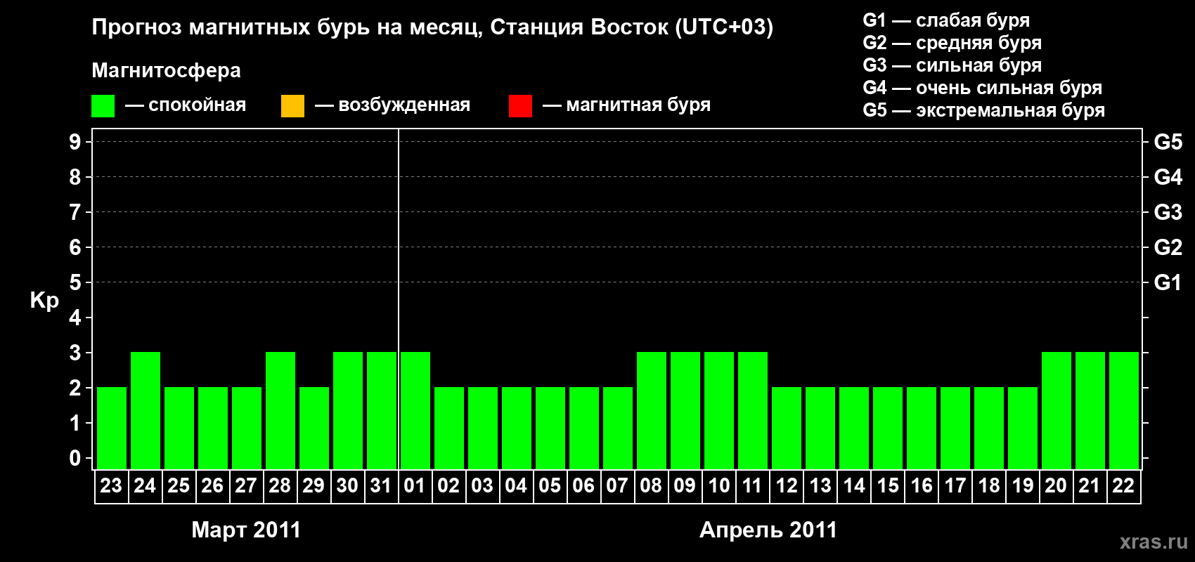 Прогноз магнитных бурь локации Станция Восток — 23 марта 2011 года