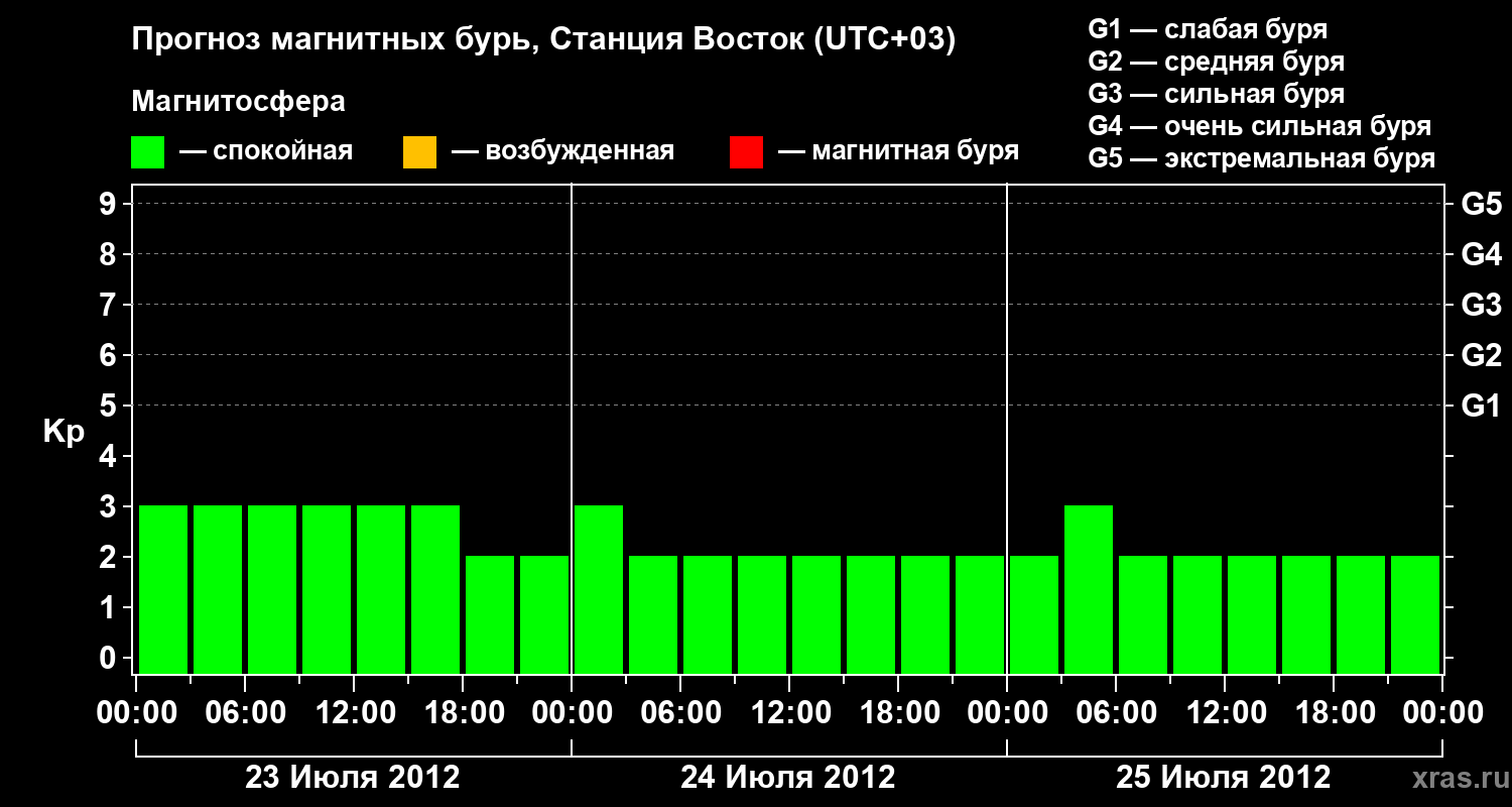 Прогноз магнитных бурь локации Станция Восток — 23 июля 2012 года