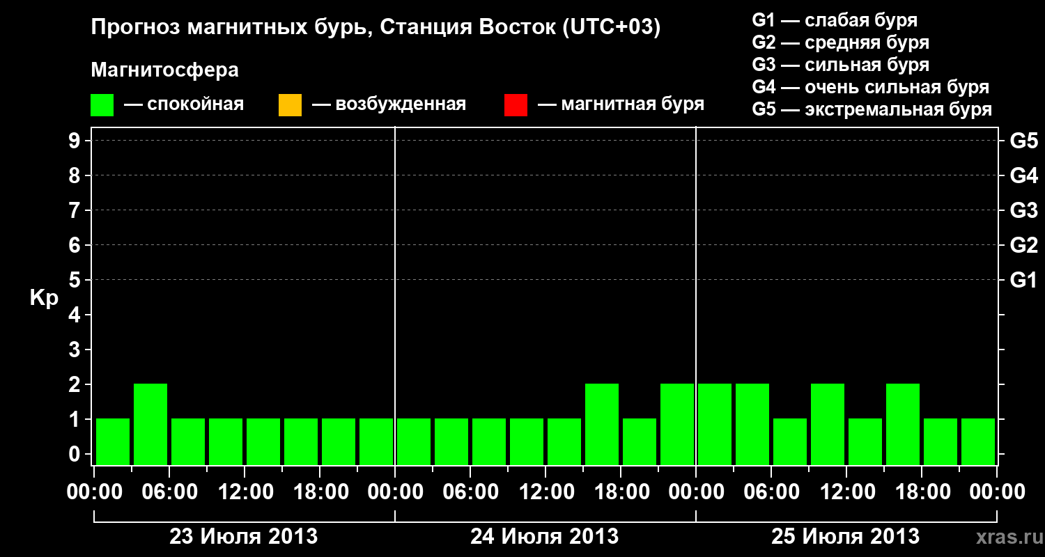 Прогноз магнитных бурь локации Станция Восток — 23 июля 2013 года