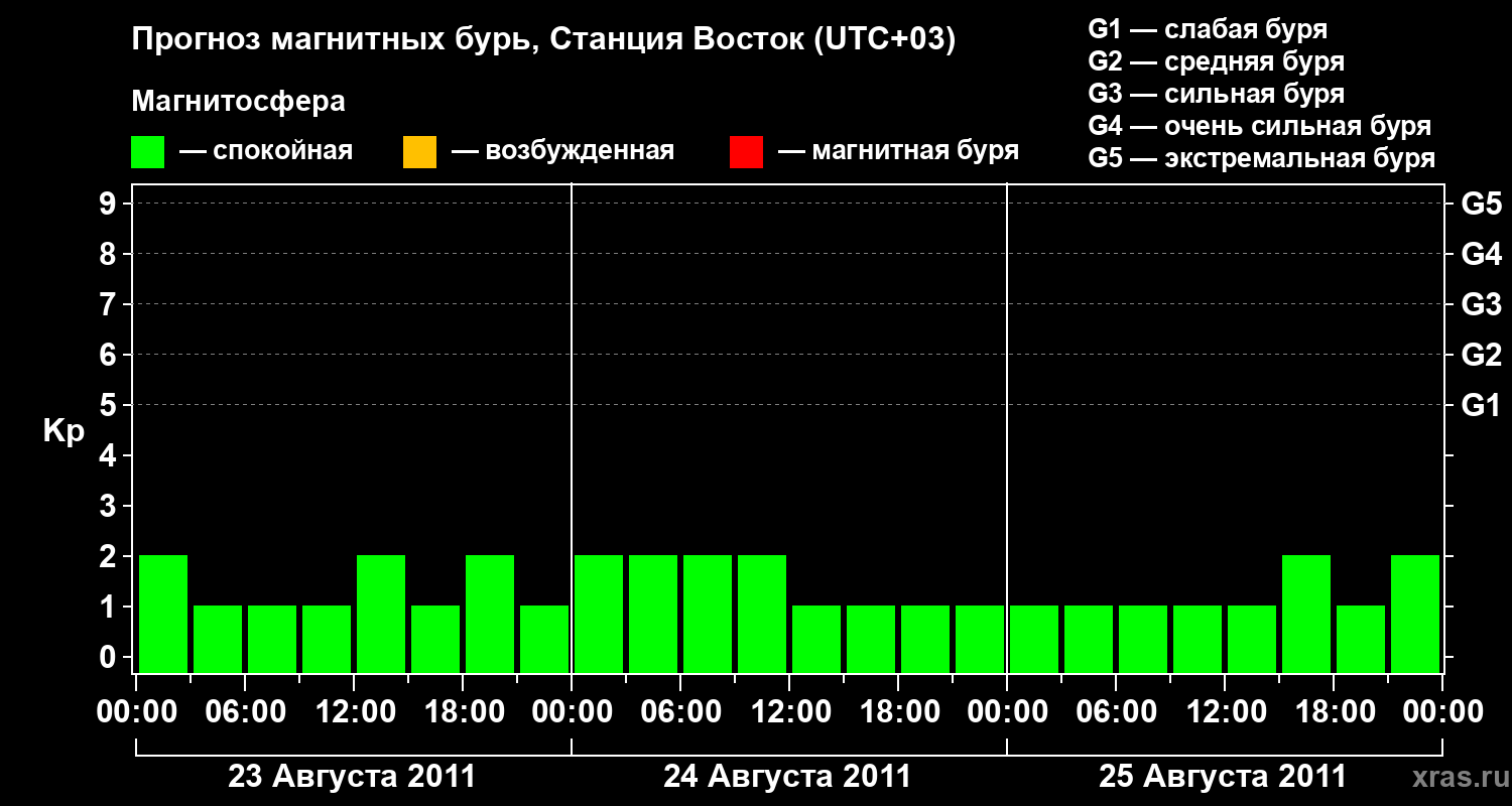 Прогноз магнитных бурь локации Станция Восток — 23 августа 2011 года