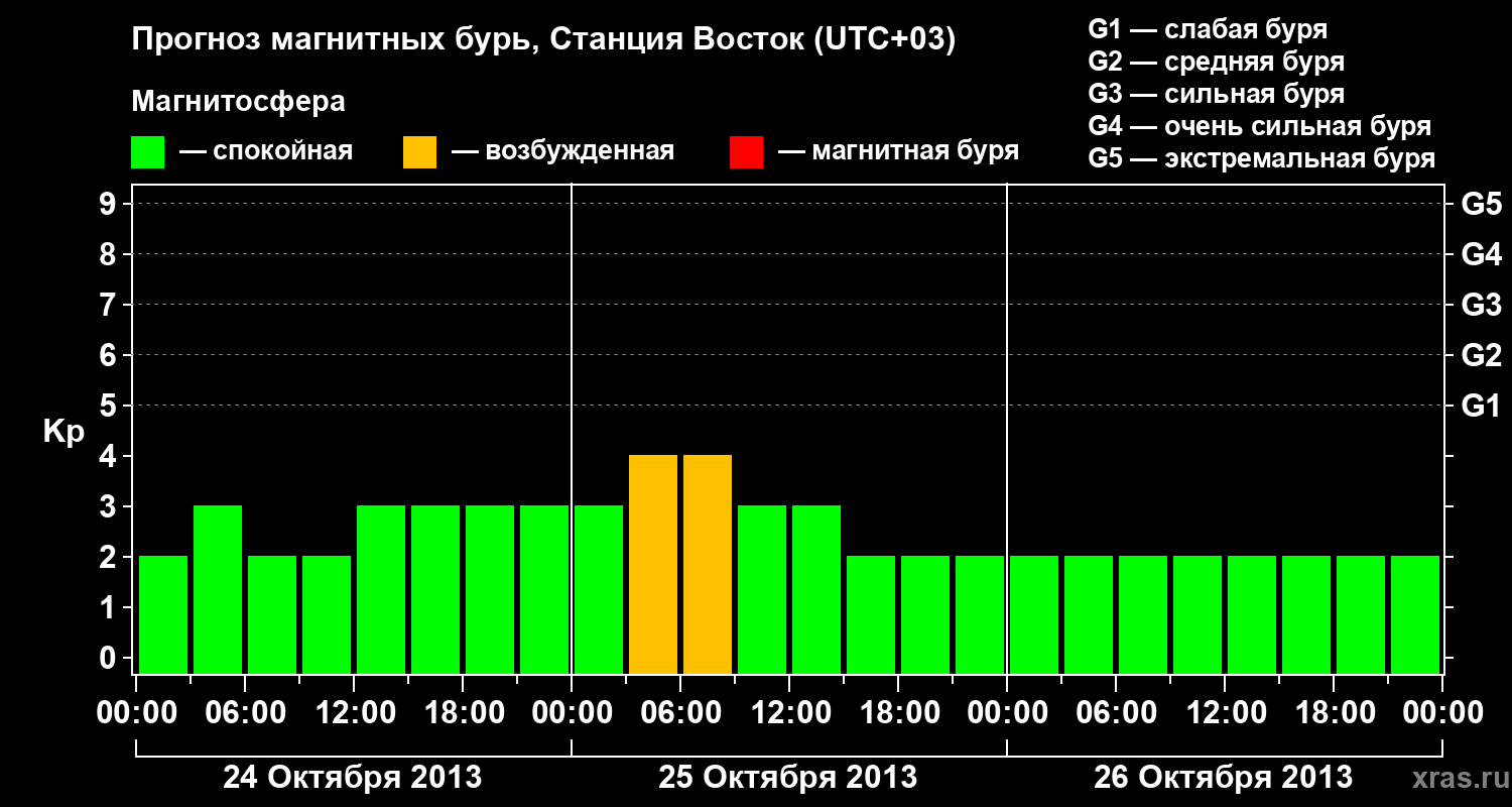 Прогноз магнитных бурь локации Станция Восток — 24 октября 2013 года