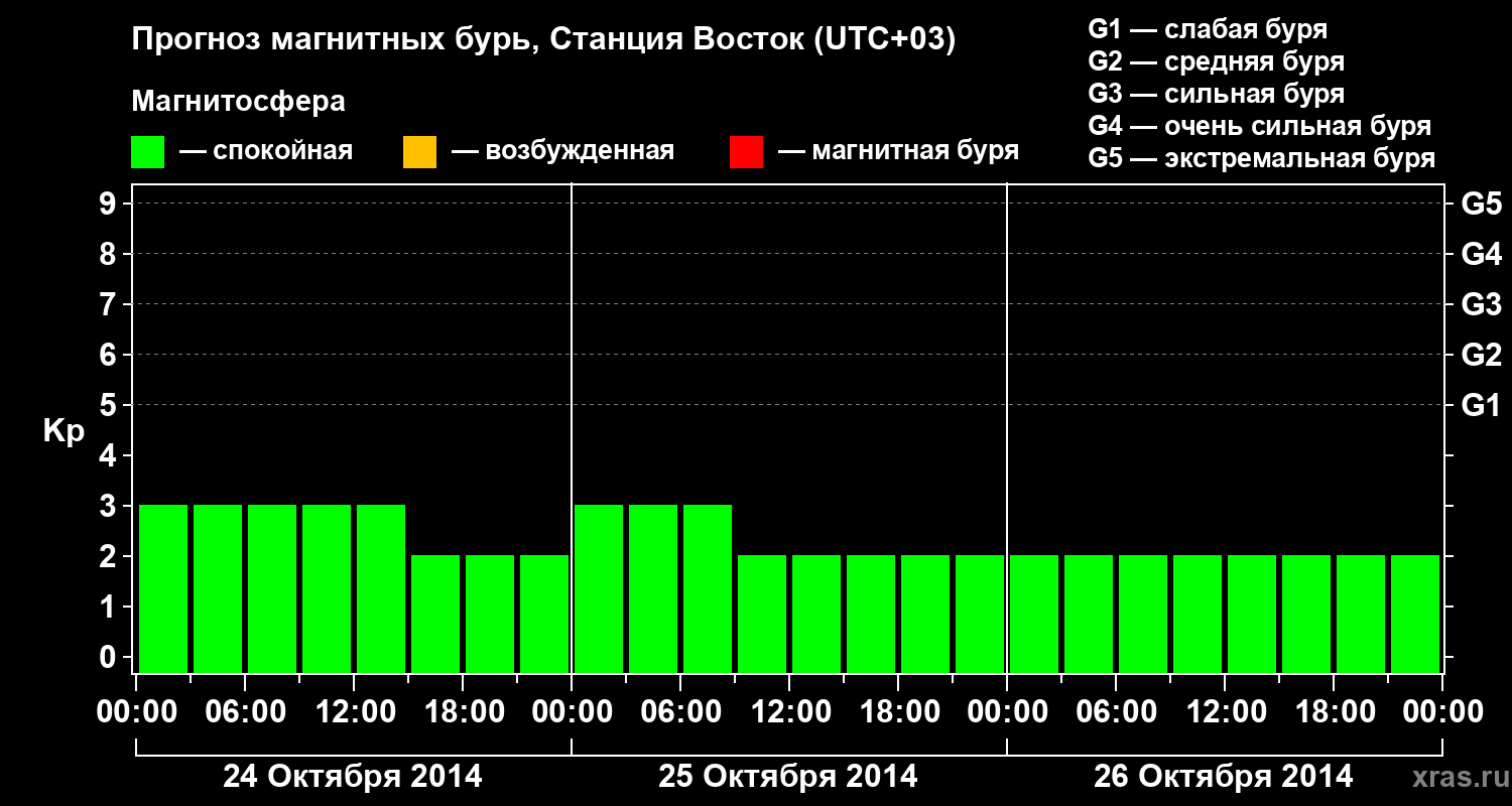 Прогноз магнитных бурь локации Станция Восток — 24 октября 2014 года