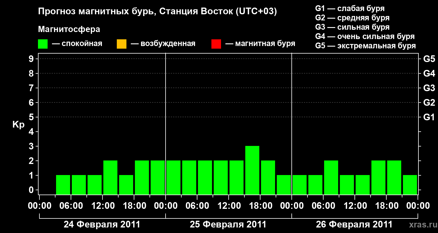 Прогноз магнитных бурь локации Станция Восток — 24 февраля 2011 года