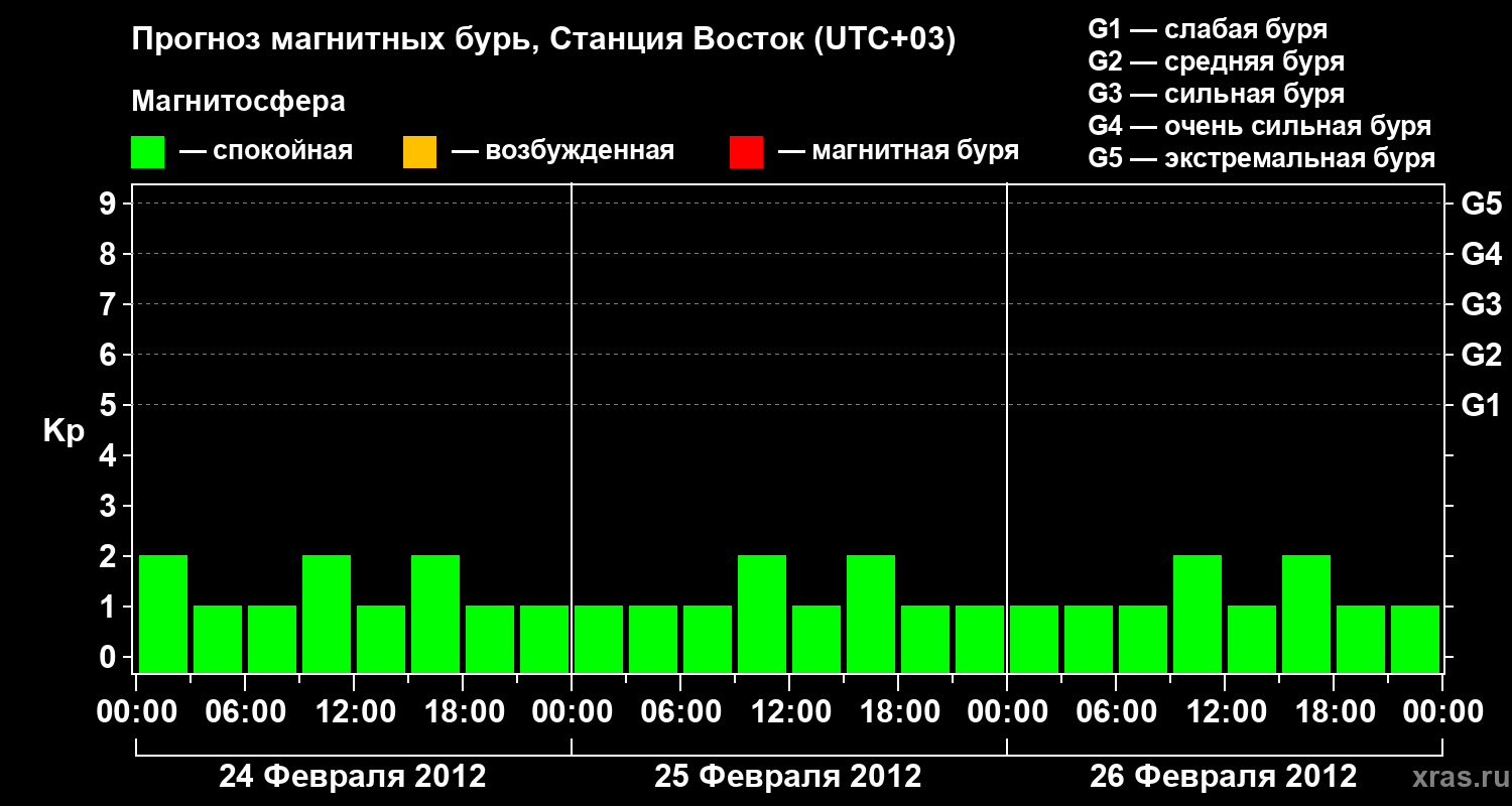 Прогноз магнитных бурь локации Станция Восток — 24 февраля 2012 года